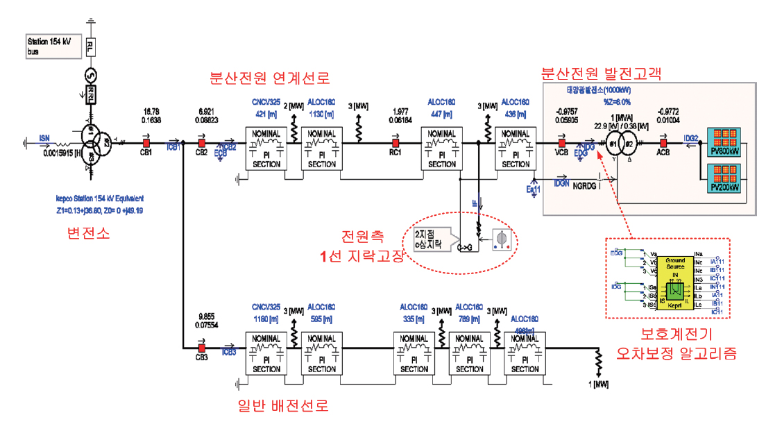 [ PSCAD/EMTDC를 이용한 보호계전기의 상전류 오차보정 계통도 ]